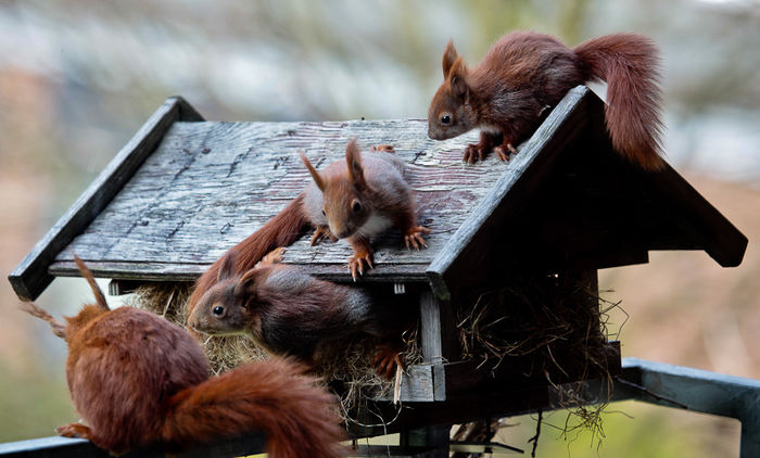 si eu dus un cuib si citeva rotite de seminte,lipite cu untura,pe linga piriu si la lac ....dar pe linga balcon,sint puse strategic.... :))))