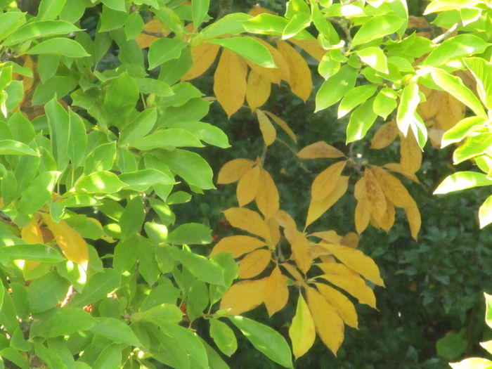 arborii au si ei flori ...frunzele....mai prin octombrie....vor fi de toate culorile si formele....pe jos..acu-s verzi...;trandafirul catarator e in gradina cu frunze....sub balconul meu